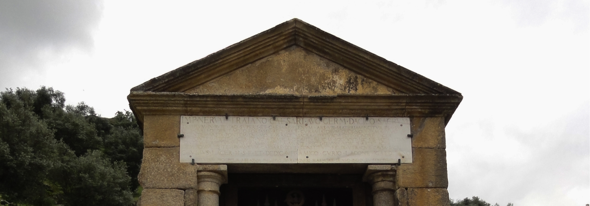 That bridge, which includes a decorative “triumphal arch” and a small temple at one end, were all designed by an architect named “Galius Julius Lacer”. Part of the inscription carved above its entrance translates to: