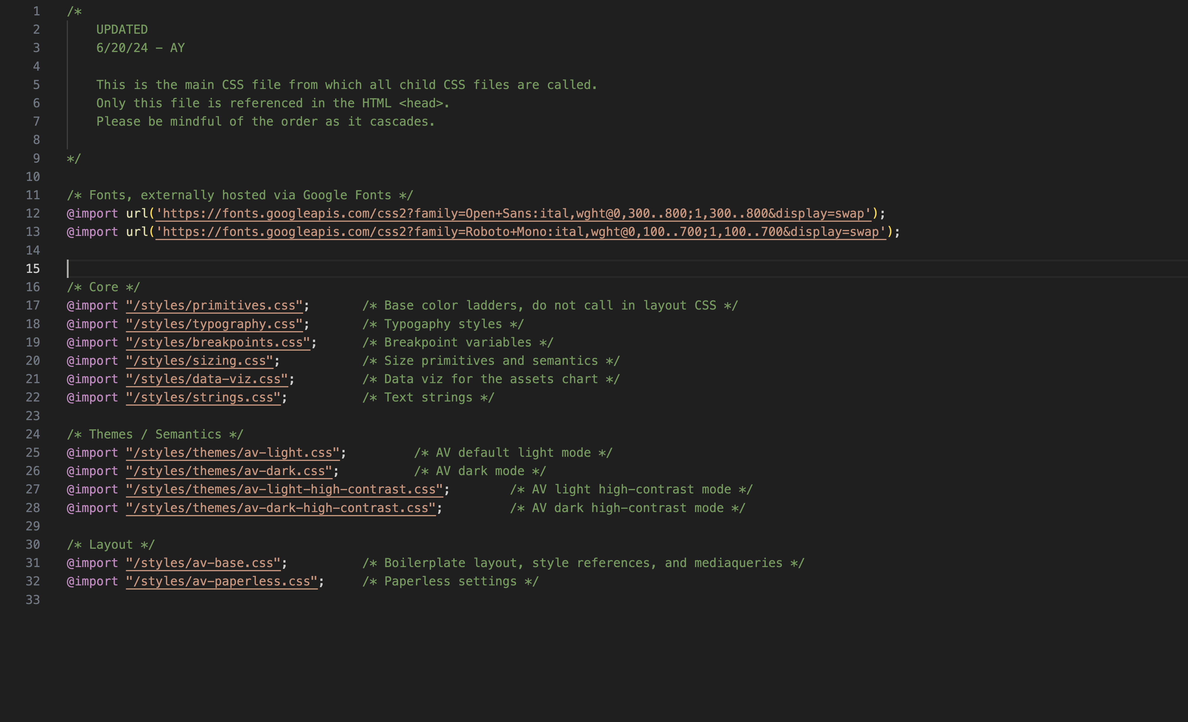 Through much experimentation and interation went into ensuring a scalable, compliant, harmonious base color system. AV's primities are based off HSL, rooted in mathmaetical steps, then refined with human eyes. Design systems builders know the true test of a ladder is how efficively the primitives handle dark mode (when piped through the semantic layer), which reminds me of the graphic design practice of flipping a composition upside down to see if it still holds up.